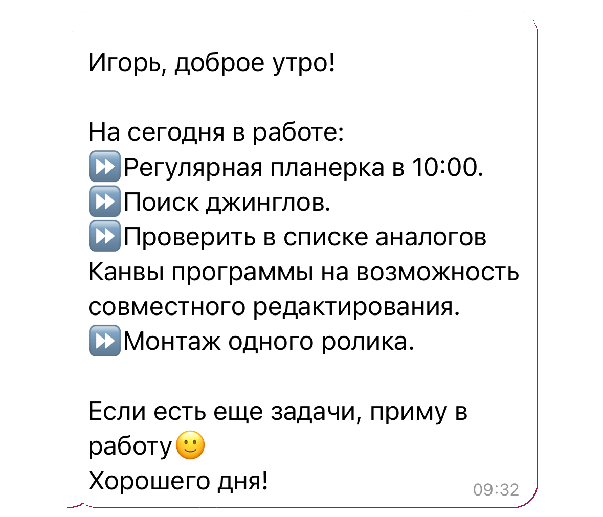 Наладилась удобная коммуникация по задачам, дедлайны контролируются и задачи исполняются в срок. Предприниматель высвобождает 40 часов времени.